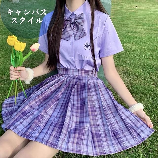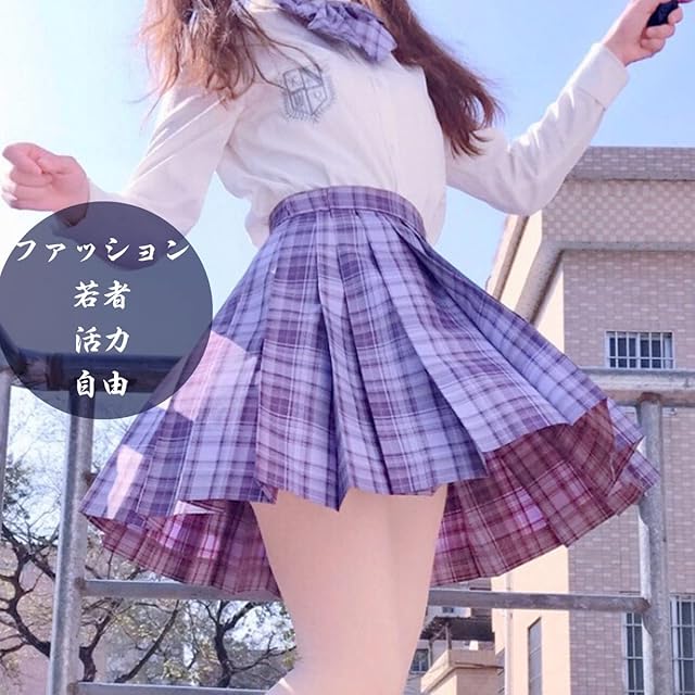 商品名:[HOLOUN] 制服 スカート ミニ プリーツスカート女子高生 JK 学生服 ハイウエスト コスプレ遊園地 学園祭 文化祭 パーティ チェック スカート(グレープソーダ, L)