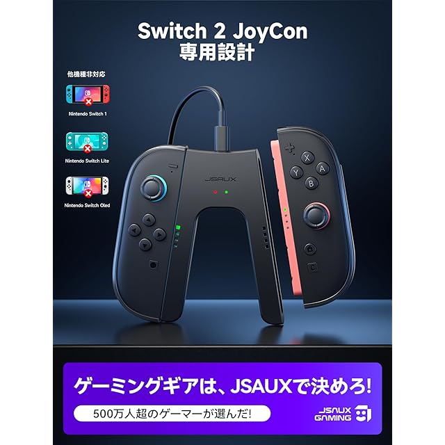商品名:JSAUX Switch 2用充電グリップ+JoyCon 2保護ケース2個セット|V字型ジョイコン2グリップ・プレイしながら充電・人間工学デザイン・充電式コントローラーホルダー・マグネット式固定・USB Cケーブル付・JoyCon 2アクセサリ ※本製品は電池を内蔵しておらず、USB給電が必要です