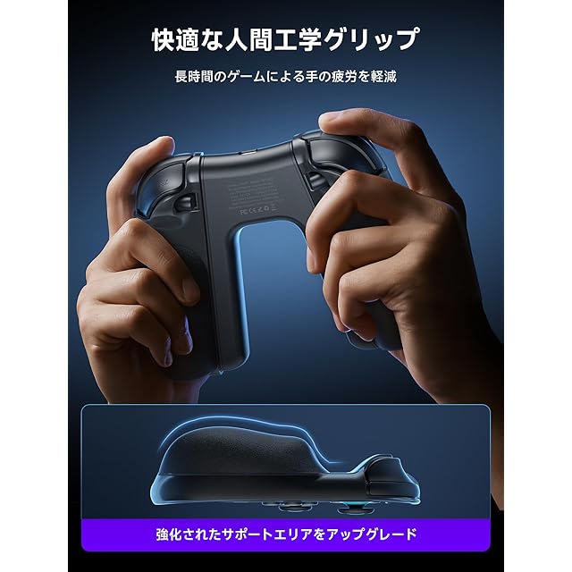 【握りやすいグリップ形状で快適操作】人間工学に基づいたV字型グリップデザインを採用。手のひらに自然にフィットし、長時間のゲームプレイでも疲れにくく、操作の安定性が向上します。JoyCon をしっかりとホールドできる形状で、レースやアクションゲームでも思い通りのプレイをサポートします。