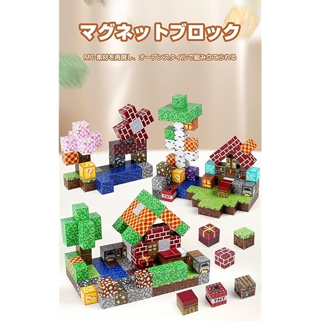 商品名:Vexolite マグネットブロック マイクラ風 磁石ブロック 立体パズル 知育玩具 マグネットパズル 小学生 おもちゃ 誕生日 入園 卒園 ギフト クリスマスプレゼント 2.3cm (106PCS 鉱山探険)
