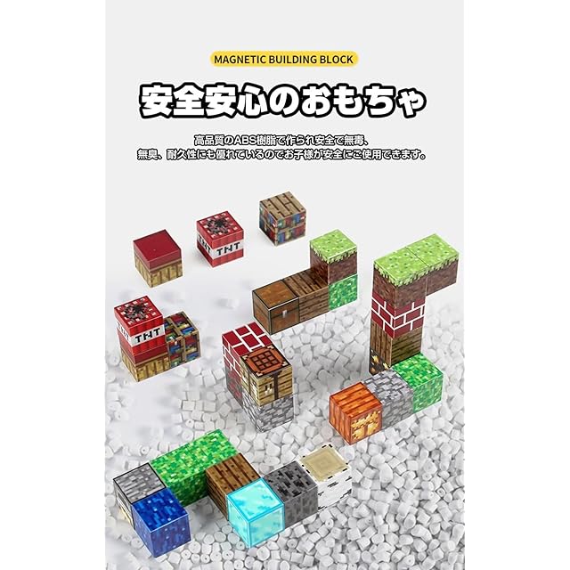 【安全安心の玩具】高品質のABS樹脂で作られ安全で無毒、無臭、耐久性にも優れているのでお子様が安全にご使用できます。磁気吸着を通じて、色々な種類のピクセルキューブと組み合わせることで、子供たちに楽しみを与え、不思議な世界へとご案内します。