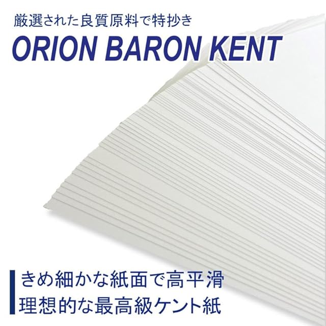オリオンバロンケント紙は研究を重ねて作り上げたオリオンオリジナルの高級ケント紙です。<br/> 表面は丈夫で消しゴムを多用しても毛羽立たず、高平滑なので細かい描画に適しています。<br/> 製図・色鉛筆・デッサン・マーカーに最適です。