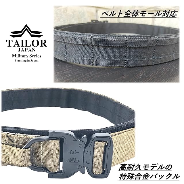 [TAILOR JAPAN] デューティーベルト ガンファイターベルト サバゲーベルト タクティカルベルト インナーベルト付き ガンベルト モールベルト コブラバックル 実物素材 タンカラー FDE (ブラウン, M)