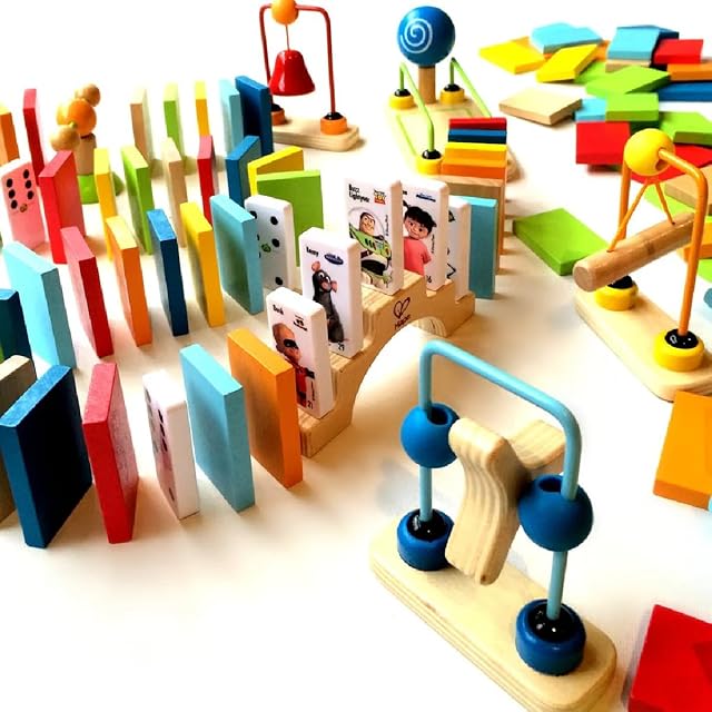 はじめてのドミノ遊びにぴったりな大きいピースの木製ドミノセットです。