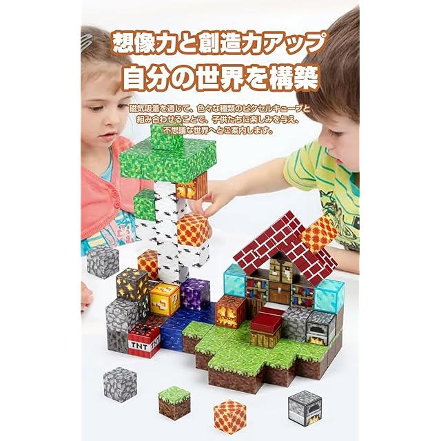 【安全安心の玩具】高品質のABS樹脂で作られ安全で無毒、無臭、耐久性にも優れているのでお子様が安全にご使用できます。磁気吸着を通じて、色々な種類のピクセルキューブと組み合わせることで、子供たちに楽しみを与え、不思議な世界へとご案内します。