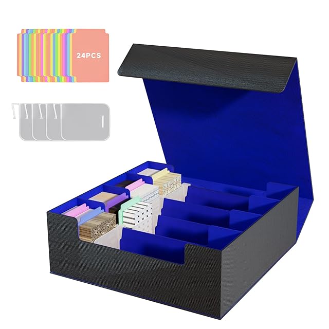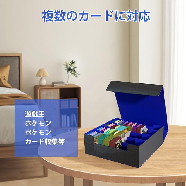商品名:カードボックス 3000枚収納(4列)カードボックス トレッカーズ PUレザー 縦型 カード収納 4コンパートメント 24バッフル付き トレッカーズ カードボックス カードボックス PUレザー 収納ボックス カードボックス トレーディングカードゲーム、デラックスマグネットカードボックス、スタンダードゲームカードボックス (青色, 4列)
