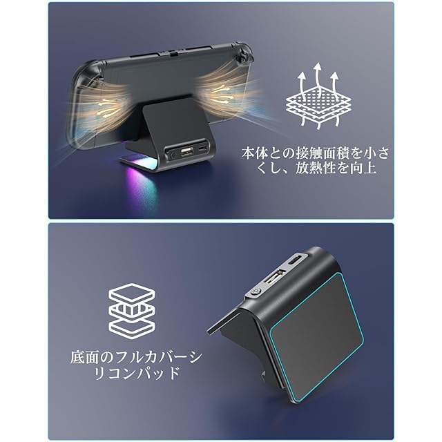 【マルチモード照明効果】:Switch2本体に特別に設計されたクールなマルチモード照明効果、底部ライトバーは夜間に目に直接光を避けることができ、またSwitch2本体の位置を正確に見つけることができます。