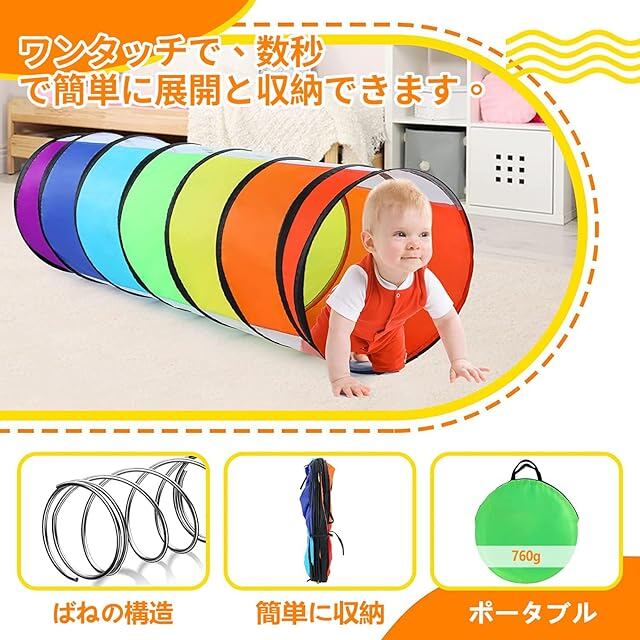 【虹のように子供用トンネル】虹のように輝くキッズテントトンネルは絶対に誕生日とクリスマスプレゼントとサプライズに最高です。おしゃれ トンネルは虹のようなカラフルな色がありますので、赤ちゃんの注意力を最大限に引きつけることができて、色の感知を最大限に豊かにして、彼らの想像力を最大限に奮い立たせます。