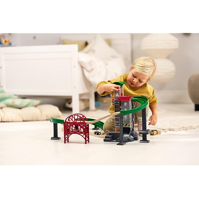 【もっとも高さのあるレールセット】貨物列車で荷物を上まで運び、倉庫に収納しましょう。フィギュアをフォークリフトや貨物エンジンに乗せることができます。フォークリフトにはマグネットが入っており荷物を運べます。スタッキングブリッジやカーブ、坂レールを使ってウェアハウスの最上部まで組み立てましょう。ワゴンごとリフトで上まで上がり、荷物を降ろしたら下に戻りましょう。