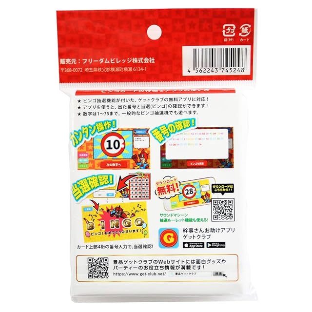 商品名:ビンゴ カード ビンゴカード パーティーゲーム (無料の抽選アプリあり) 300枚セット ゲットクラブ