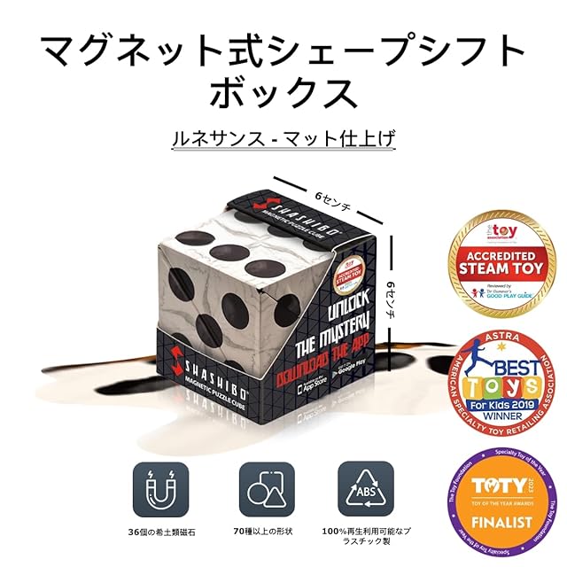特許取得済みで受賞歴のあるShashiboの知覚ボックスには36個のレアアースマグネットが付いており、70種以上の形状に変化させることができる革新的なデザインです。 手にぴったりとフィットするサイズで、何時間も頭を使いながら楽しむことができます。無限の創造性で五感を刺激します。 あなたはシェイプシフトボックスをマスターできるでしょうか?
