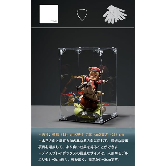 商品名:YFYUNDUDU 八番屋 フィギュアケース アクリル フィギュア収納 マグネット式 UVカットおもちゃの収納ボックス 高い透明度 収納ボックス 組み立て式 防汚れ手袋-クリーニングクロス付き フィギュアや小物の保護に最適 大切なコレクションを美しく飾る (幅15 × 奥行15 × 高さ25 cm 台座: 黒)