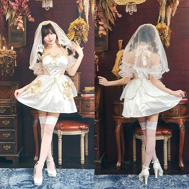 セット内容:ベール、チョーカー、ワンピース、付け袖、透明ストラップ