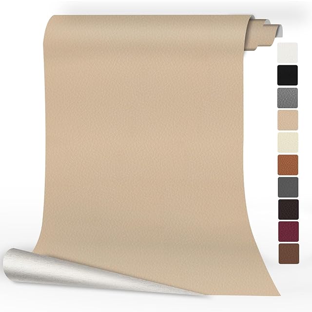 合成皮革 補修シート 60 x 200 cm 家具用自己粘着合皮 補修シート、バイク シート 補修、 自動車シート、椅子、ソファ、船用レザー補修シート 米色