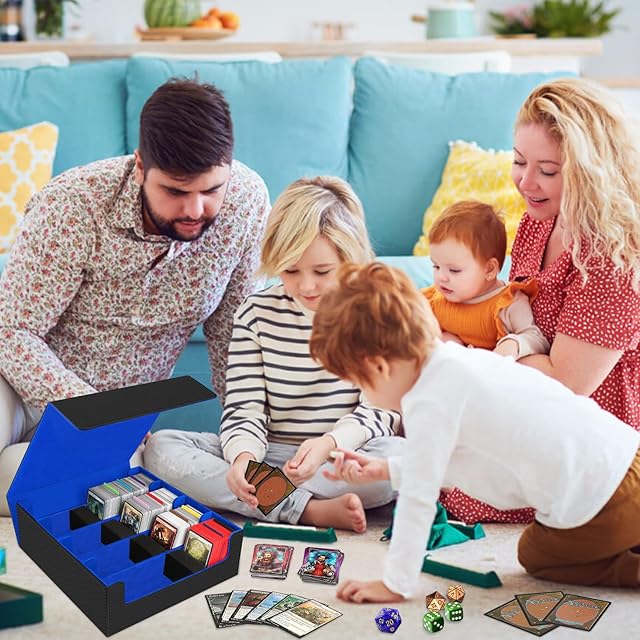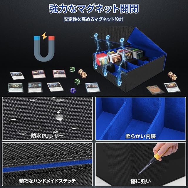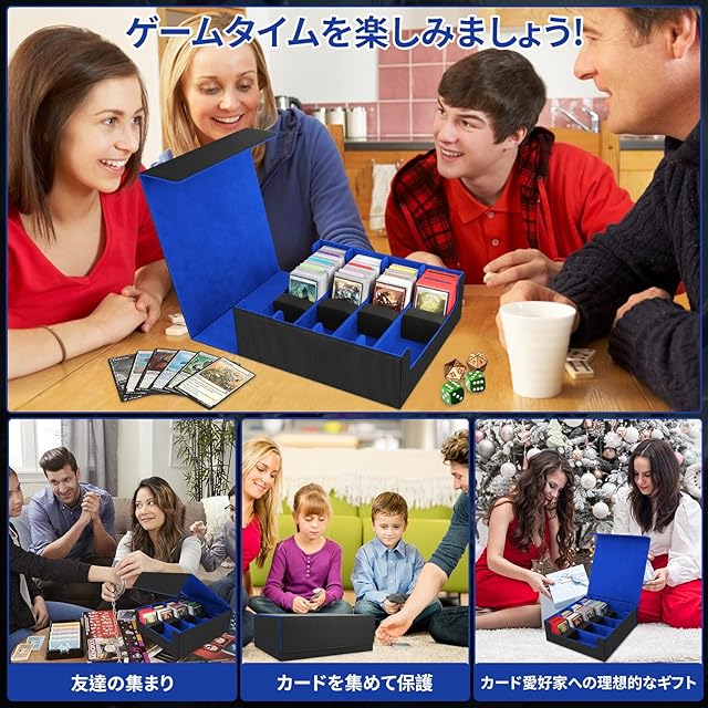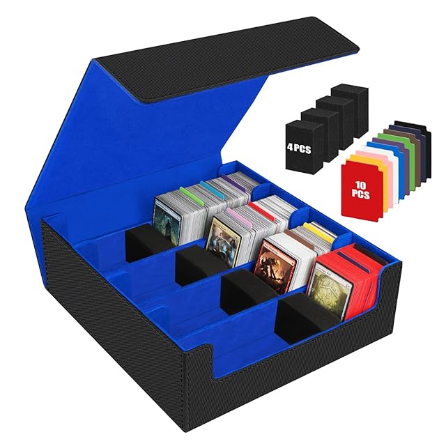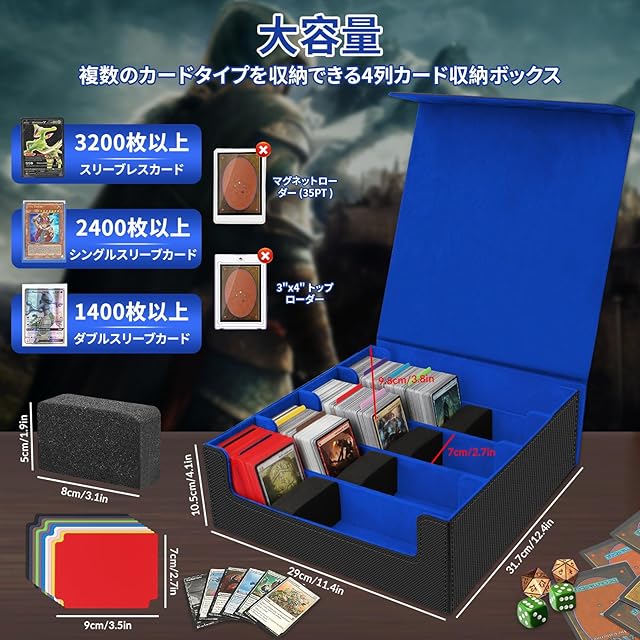HIMOMO デッキケース 3200枚以上収納 大容量 4列、マグネットローダー トレカケース用 ケース PU レザー 縦型ゲームカードボックス、10つの仕切り付きトレカケース カード ストレージボックス カードケース トレーディングカードゲーム、高級磁気、標準ゲームカード用キャビネット (青)