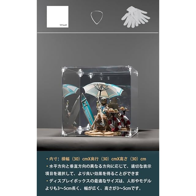 【商品仕様】 内寸:幅30cm × 奥行30cm × 高さ30cm 適用範囲:特に1/7スケールのキャラクターモデルと1/24スケールのカーモデルに適しています。コレクションアイテムのサイズより3~5cm大きい展示キャビネットをお勧めしますので、さまざまなカラフルなコレクションを美しく見せるスペースを確保できます