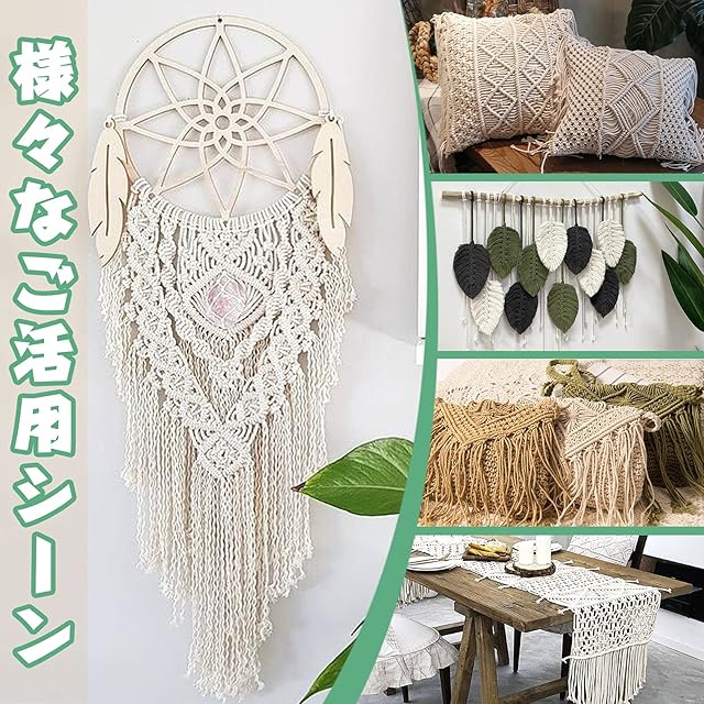 【幅広い用途】このニットマクラメロープは、壁掛け、キャプチャネット、植物ハンガー、タペストリー、園芸、DIY、プレゼントパッケージ、結婚式とクリスマスのボヘミアン飾りのアイテムなど、様々なレース用品を作るのに適しています。