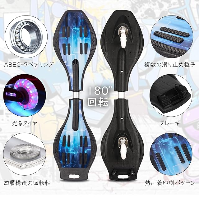 商品名:AISFA スケートボード 子供 ブレイブボード スケボー 子供 スケートボード キッズ スケートボード 子供 キッズ用 エスボード子供用 ブレードボード 子供用 ブレイブボード 子供用 ブレボー 外遊び おもちゃ 光るタイヤ ギフト女の子 男の子 誕生日 プレゼント