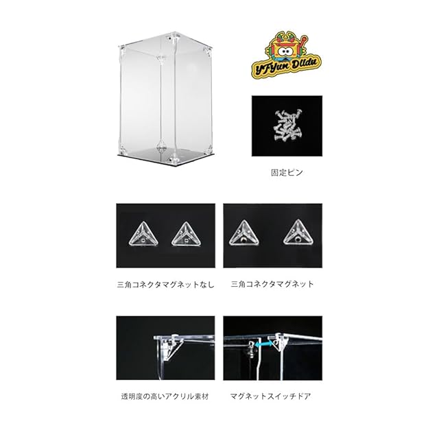 商品名:YFYUNDUDU 八番屋 フィギュアケース アクリル フィギュア収納 マグネット式 UVカットおもちゃの収納ボックス 高い透明度 収納ボックス 組み立て式 防汚れ手袋-クリーニングクロス付き フィギュアや小物の保護に最適 大切なコレクションを美しく飾る (幅30 × 奥行20 × 高さ15 cm 台座: 黒)