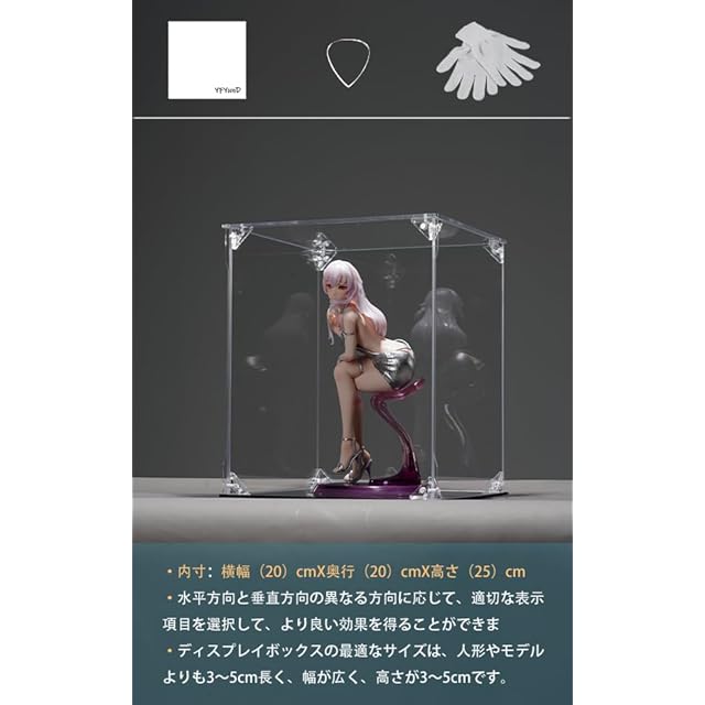 【商品仕様】 内寸:幅20cm × 奥行20cm × 高さ25cm 適用範囲:特に1/8スケールのキャラクターモデルに適しています。コレクションアイテムのサイズより3~5cm大きい展示キャビネットをお勧めしますので、さまざまなカラフルなコレクションを美しく見せるスペースを確保できます
