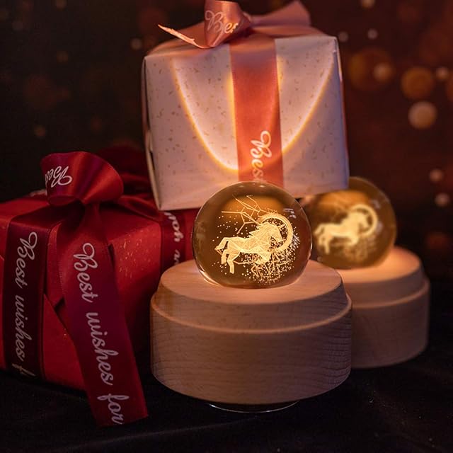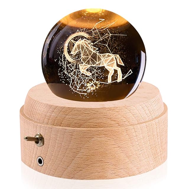 Mozalida オルゴール 【正規品】 誕生日プレゼント ユニコーン 星座 クリスタル ボール クリスマス ギフト スノードーム バレンタインデー 月のランプ 彼女 間接照明 ベッドサイドランプ LEDライト USB充電 投影機能 インテリア おしゃれ 木製 手作り結婚祝い 卒業祝い 記念日 女性 雑貨 かわいい 雰囲気 癒しグッズ 投影効果 曲目:ONE LOVE(嵐)
