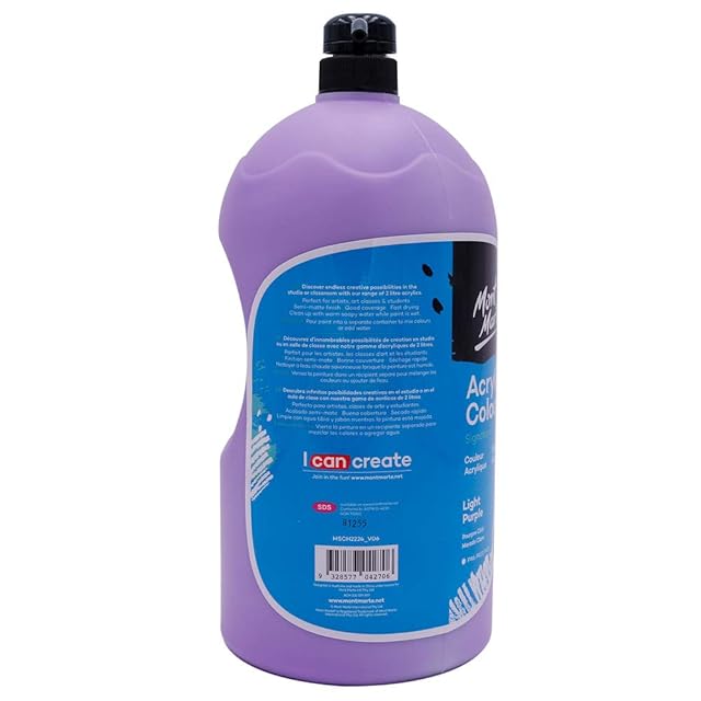 Mont Marte アクリル Light Purple 2リットル 2L ポンプ付き 速い乾燥 被覆力強い 学生や芸術家に向き Acrylic Paint