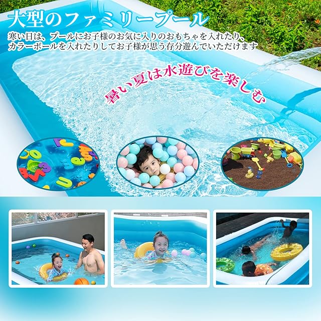 【大型、ファミリープール】305*183*56CMな大きいサイズの家庭用プールで、大人でも楽に使用できます。夏の暑い時期に家族と一緒に水遊ぶのは、親と子供の間の感情を促進することができて、夏の暑さを和らげ、気持ちを楽にすることができます。
