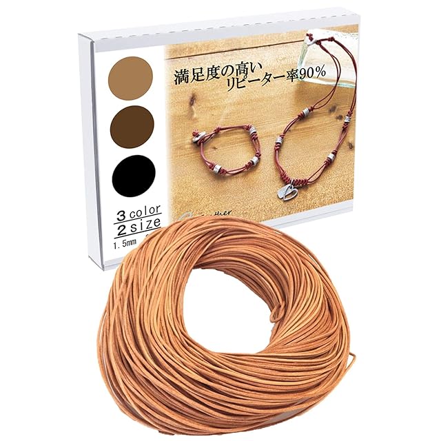 商品名:E.Feather (イーフェザー) 本革 リアル レザー 牛革紐 革紐 丸紐 革ひも (ナチュラル1.5mm×20m)