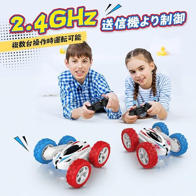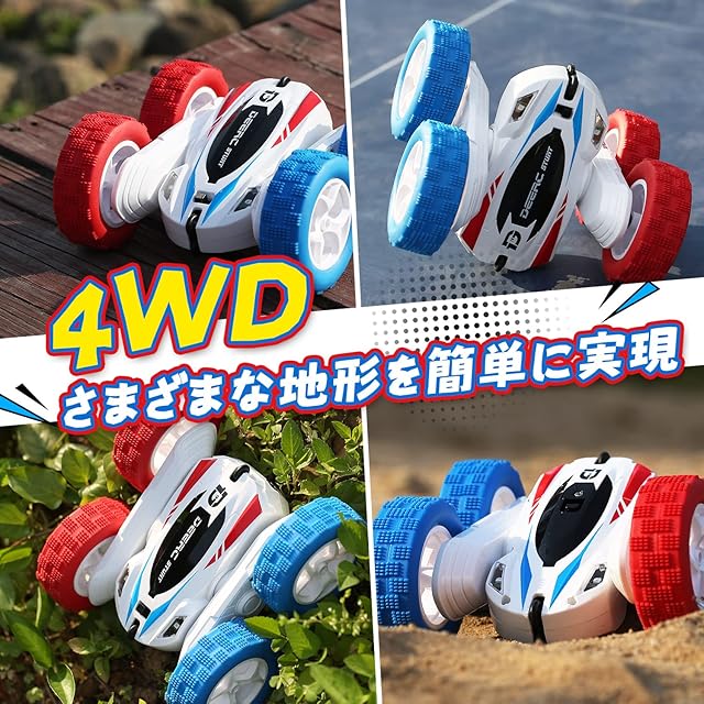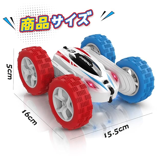 DEERC ラジコンカー こども向け スタントカー RCカー リモコンカー 室内 360度回転 両面走行 四輪駆動 オフロード 車おもちゃ バッテリー2個付き 40分間走れ 2.4Ghz無線操作 贈り物 誕生日 入園 こどもの日 プレゼント 子供 男の子 小学生 中学生 日本国内認証済み DE35