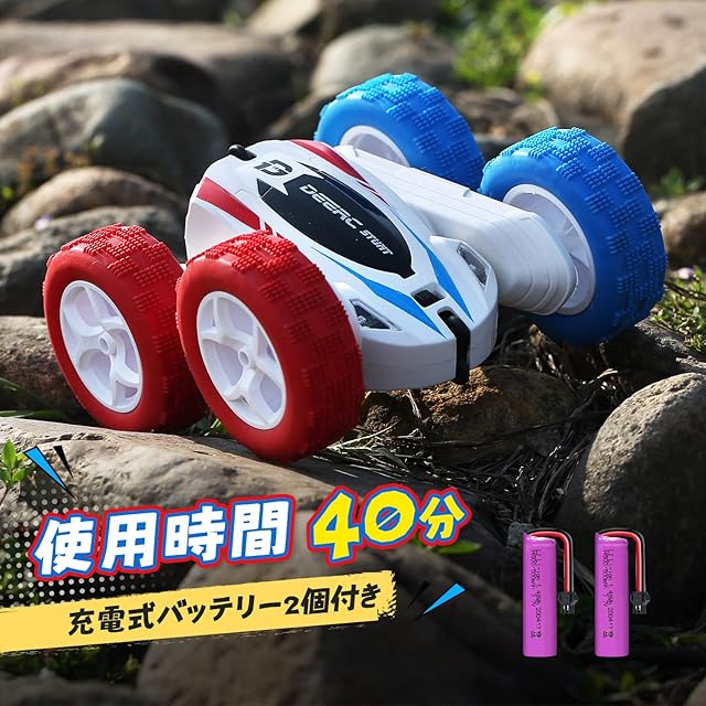 【操作時間40分】 2つの3.7V 400mAh高品質充電式バッテリーを装備する。RCスタントカーの楽しい製品機能を最大40分(各バッテリーで約20分)楽しむことができます。これも操作に依存します。