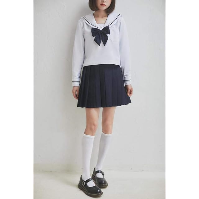 商品名:Aculldo セーラー服 半袖 長袖 女子制服 学生服 女子高校生 高校生 学生 制服 コスチューム 3点セット JK制服 二本 白い 可愛い コスプレ 仮装 本格制服 大きいサイズ (半袖セット,Xxl)