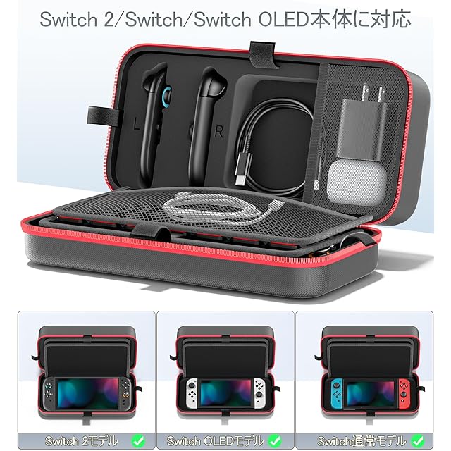 【Switch 2/通常/有機ELモデル対応】Switch ケース スイッチ バッグ 大容量NSW収納ポーチ 持ち運び便利 スイッチ本体/Joy-Con/電源アダプタ/28枚ゲームカード/ケーブル/イヤホンなど全部収納可能 防水 防塵 防汚 耐衝撃 全面保護 スウィッチ用キャリーケース