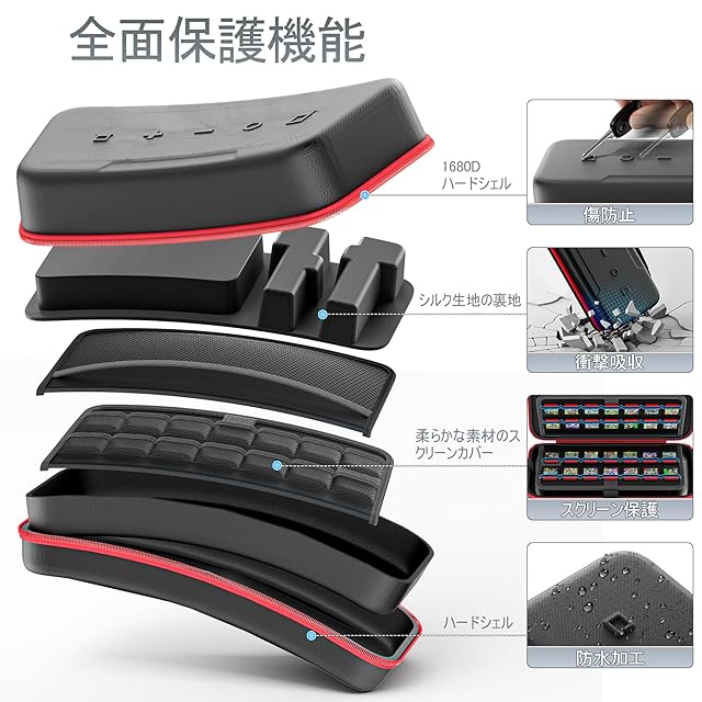 Switch ケース スイッチ収納ケース 大容量Switch収納ポーチ 持ち運び便利 Switch本体/Joy-Con/電源アダプタ/28枚ゲームカード/ケーブル/イヤホンなど全部収納可能 防水 防塵 防汚 耐衝撃 全面保護 Switch用キャリーケース