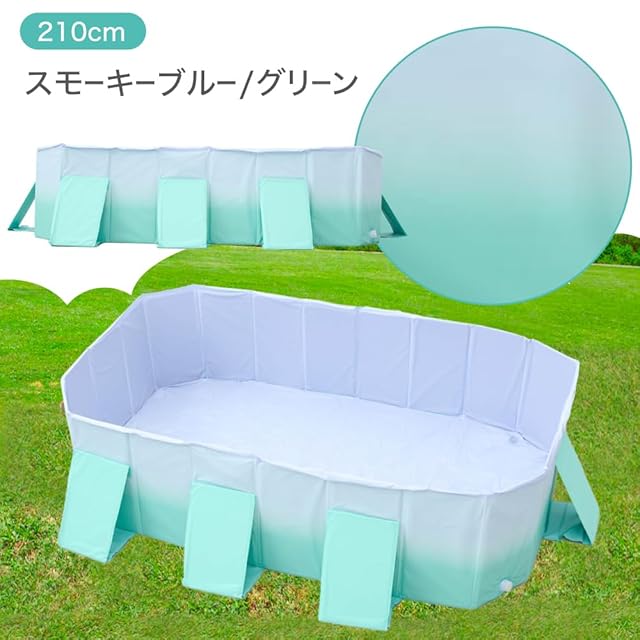 プール 2.1m 2.5m 3.0m 大型 折り畳みプール 空気入れ不要 【子供たちを笑顔にするHappy family pool】遊具 子供用 家庭用 折り畳み式 (スモーキーブルー/グリーン, 2.1m)