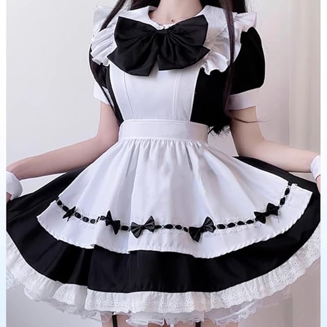 [AOTYP] メイド服 コスプレ コンカフェ メイド 可愛いリボン ショート丈 メイドコスチューム ハロウィン仮装 レディース セット 一式 こすぷれ イベント パーティー 大人 ハロウィン 学園祭 撮影 オタクダンス ブラック M