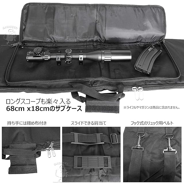 ●サイズ外寸(約):1170x250 (サブライフルケースは680x180) ●商品状態:新品未使用 ●材質:ナイロン ●色:ブラック