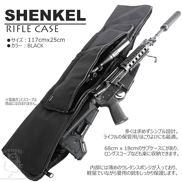 SHENKEL シンプル ロング ライフルケース ソフトタイプ 1170x250 BK 黒 ガンケース