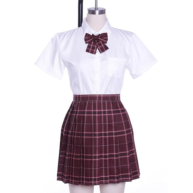 [NIUKACOS] 制服 コスプレ 女子高校生 スカート シャツ リボン 女子高生 JK プリーツスカート レディース 制服セット 学生 コスプレ衣装 入学式 卒業式 撮影会 イベント ワインレッド XL