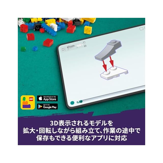 楽しい組み立ての世界 – 手順がひと目でわかるLEGO Builderアプリは、3D表示されたモデルをズームや回転させながら組み立て、作業途中の状態で保存していつでも再開できます