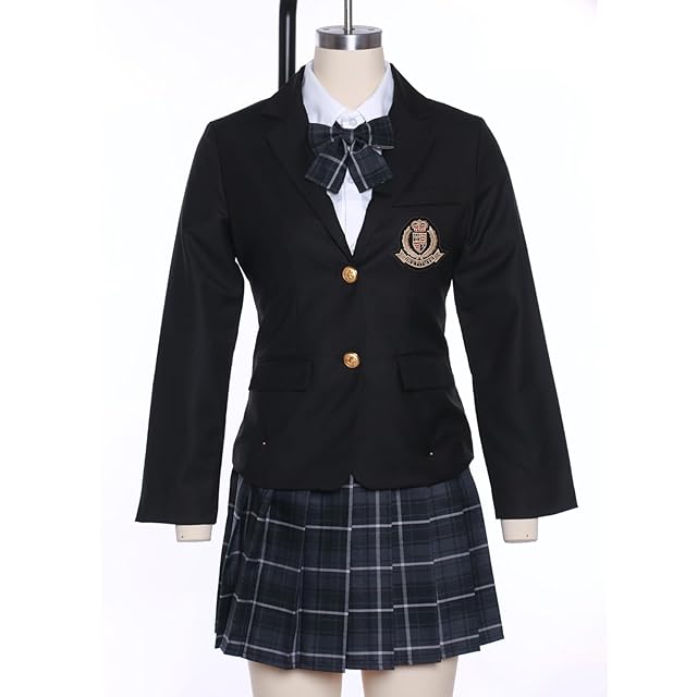 セット内容★:プリーツスカート+シャツ+リボン+ブレザー+バッジ、5点のフルセットが揃っています。プリーツスカートの下の部分に配送中にプリーツを保護する糸があります。着用する前にその糸を丁寧に切ってください。疑問がございましたら、いつでもお気軽にお問い合わせください。