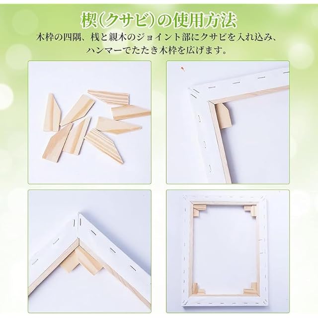 【丈夫&変形しにくい】:ホッチキスでキャンバス生地をとじていた、榫卯構造ので、絵具の固着性にも優れています。画布をしっかりしている。丈夫で変形しにくい。キャンバス生地が動きにくく、直接にイーゼルに載せれば、早速に絵画できます。