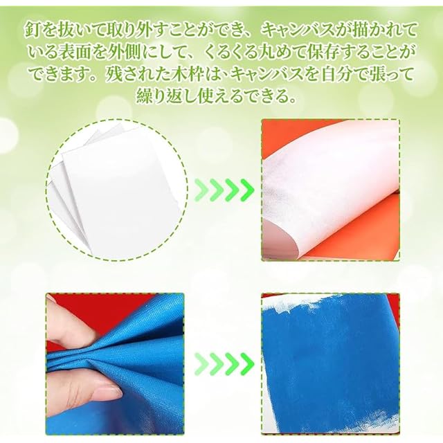 【丈夫&変形しにくい】:ホッチキスでキャンバス生地をとじていた、榫卯構造ので、絵具の固着性にも優れています。画布をしっかりしている。丈夫で変形しにくい。キャンバス生地が動きにくく、直接にイーゼルに載せれば、早速に絵画できます。