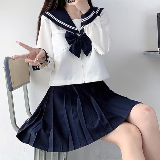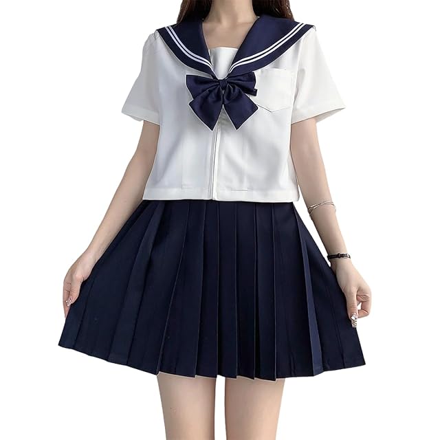 [GSYCL] セーラー服 紺色 長袖 半袖 女子高生 蝶結ぶ 3点セット コスプレ JK 制服 スカート 上下セット 女子制服 正統派 本格 二本 文化祭 学园歳 卒業式 歓送迎会 大きいサイズ レディース 可愛い (半袖セット, 2XL)
