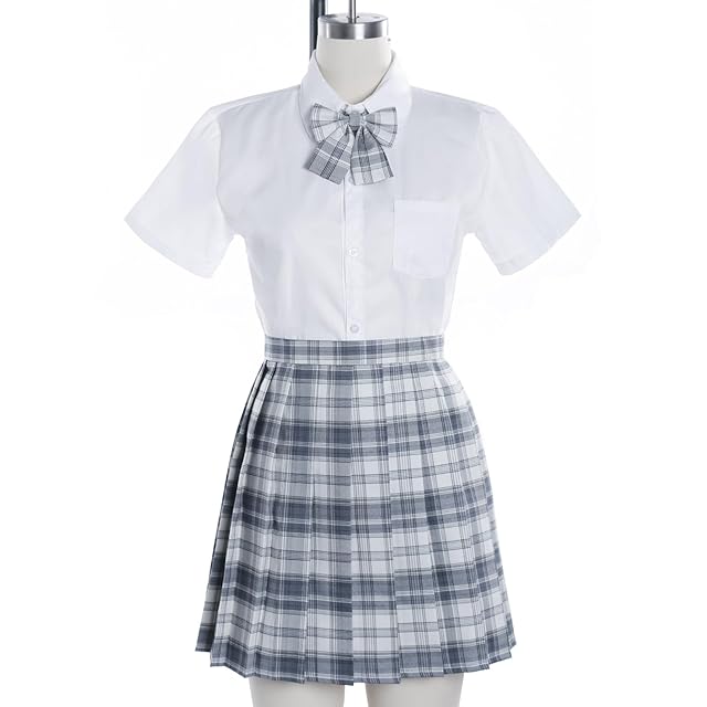 セット内容★:プリーツスカート+シャツ+リボン、3点のフルセットが揃っています。プリーツスカートの下の部分に配送中にプリーツを保護する糸があります。着用する前にその糸を丁寧に切ってください。疑問がございましたら、いつでもお気軽にお問い合わせください。