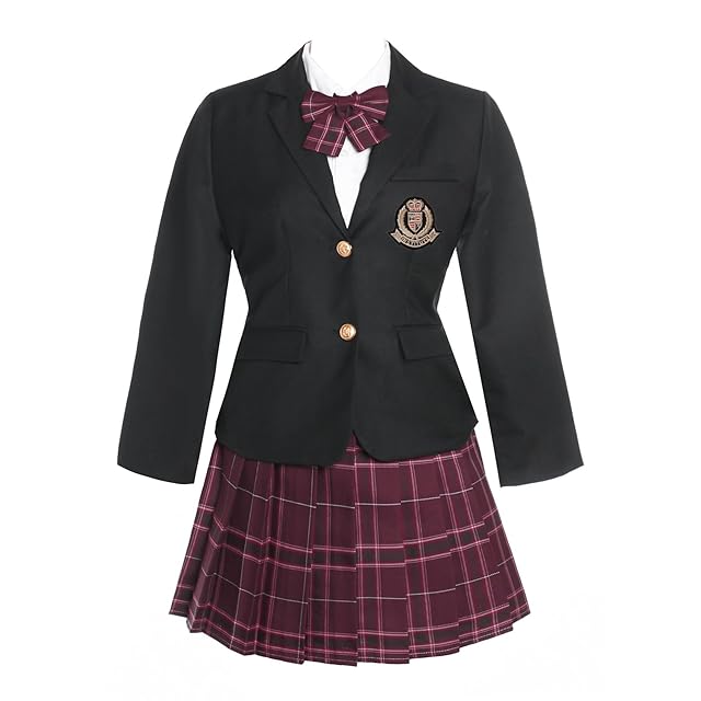 セット内容★:プリーツスカート+シャツ+リボン+ブレザー+バッジ、5点のフルセットが揃っています。プリーツスカートの下の部分に配送中にプリーツを保護する糸があります。着用する前にその糸を丁寧に切ってください。疑問がございましたら、いつでもお気軽にお問い合わせください。