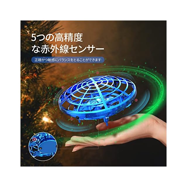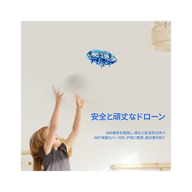 商品名:フライングボール DEERC おもちゃ ミニドローン こども向け UFO ヘリコプター ジェスチャー制御 室内 五つのセンサー 360度回転 障害物回避 自動ホバリング 2段階スピード LEDライト付き 誕生日 入園 こどもの日 プレゼント 子供 男の子 小学生 中学生 贈り物 (青)