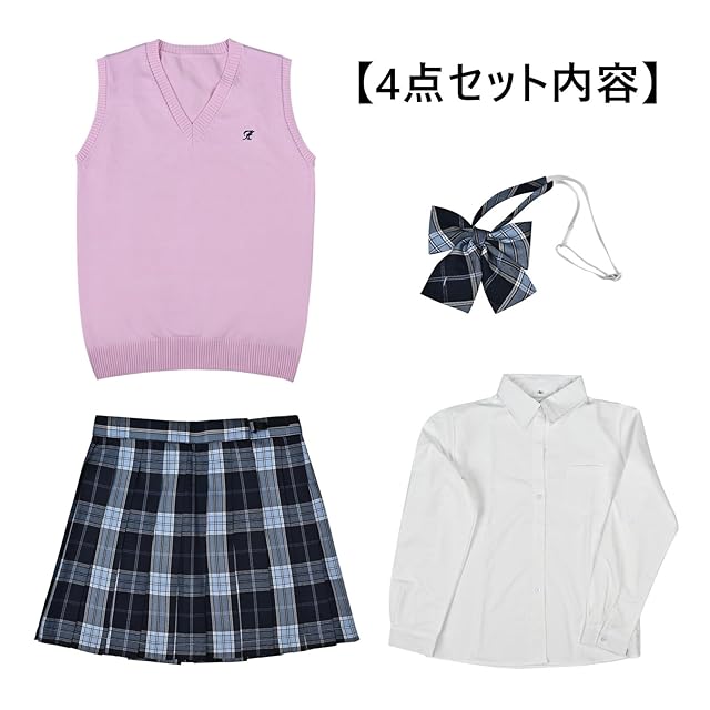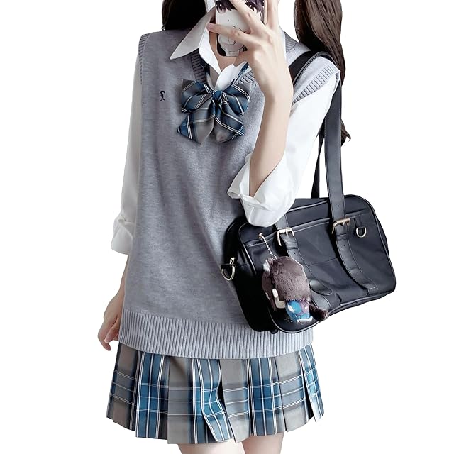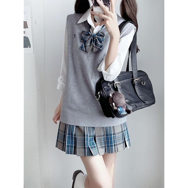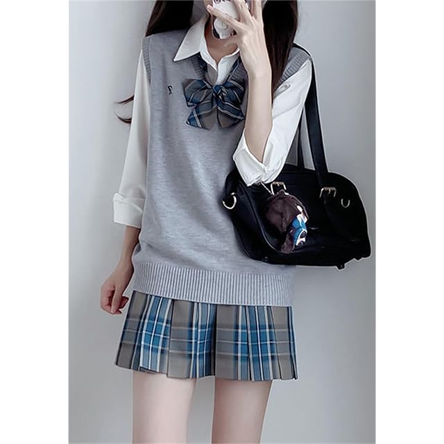 [QOOLYㅤ] スクール ニットベスト Vネック 女子高生 制服 学生服 プリーツスカート チェック柄 リボン 女の子 JK制服 コスプレ ニットウェア レディース 高校生 中学生 コスチューム 仮装 卒業式 入学式 学院風 grey M