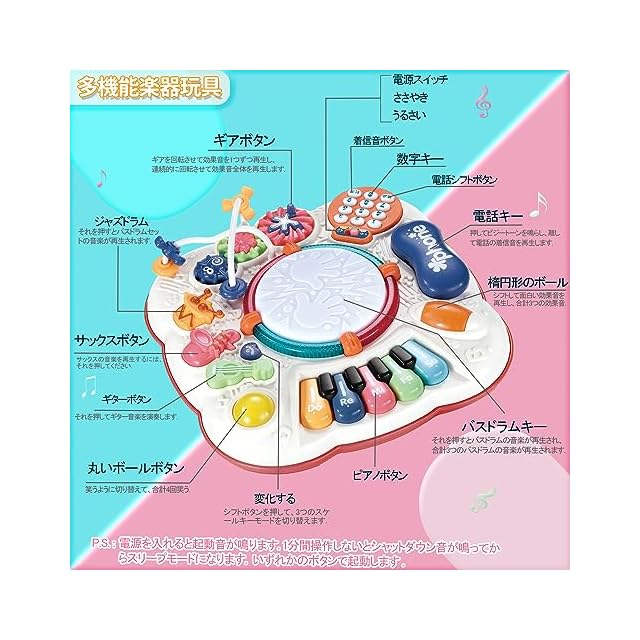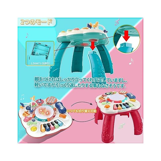 音楽おもちゃ 子供 多機能 ミュージカルテーブル 子ども 早期開発 ビーズコースター ルーピング 知育玩具 ピアノ・鍵盤楽器の玩具 男の子 女の子 電子 キーボード 楽器 おもちゃ<br><br> 製品仕様:<br> 多機能 楽器おもちゃ(ミュージカルテーブル)<br> 素材:質の高い樹脂材料を作られ、変な匂いしないし、BRAとフタレート類も含まないです。<br> 安心と安全への取り組み:EN(欧州玩具安全基準)及び、米国玩具安全基準(ASTM F963)の安全基準の基に合わせて作られています。<br> サイズ(組み立てた後。): 32*32*32cm<br> 単3電池3本(別途用意/電池ボックスはネジ止め式)<br> おもちゃのタイプ:数多のバリエーションで音や音楽が鳴って楽しい玩具だ。叩くだけで色んな音が楽しめる。いろんな遊び方ができるし、音質もいいし、多機能なので長く遊べそうです。<br><br> 音楽が好きならばいろいろとそろっており楽しいおもちゃ!<br> はゆかいなサウンドにライトアップが楽しい、はじめてのピアノにぴったり!ピアノ部も木琴部もドラム部も押せば鳴りドラム部が光る。音がする+光るという子供が大好きな要素が詰まった玩具で。クリスマスプレゼント、誕生日などプレゼントにオススメです<br><br> 品質: 万が一商品に不具合がある場合は、すぐ弊社と連絡してください 、無料交換あるいは全額返金対応が可能です。<br>