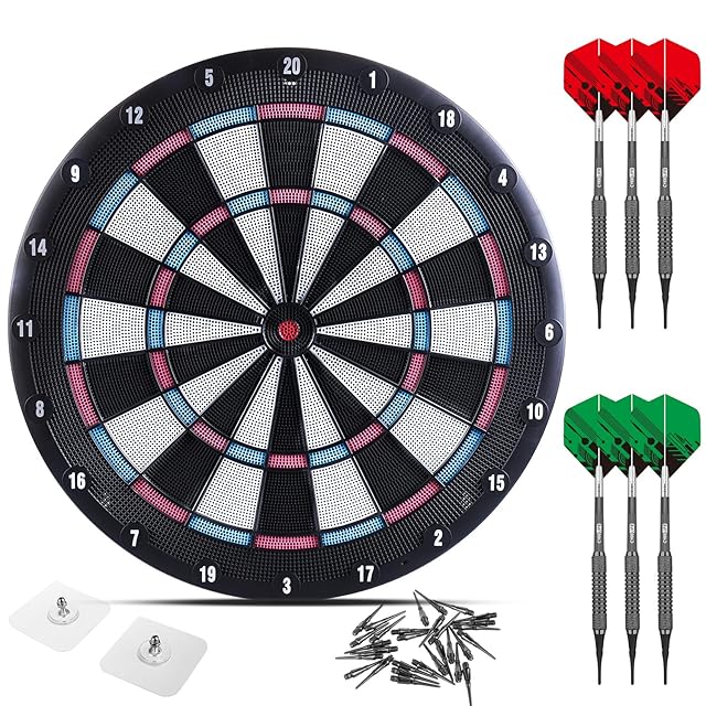 CyeeLife-ピンク ソフトダーツボード Dartboard+6本のダーツ(15g)+6本無傷フック+30個 ブラックチップ