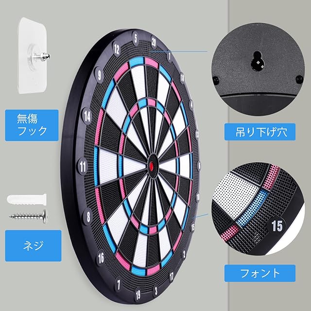付属品 : ブラックチップ(30個),ダーツ(6個),フック2つ,ねじ,説明書1つ